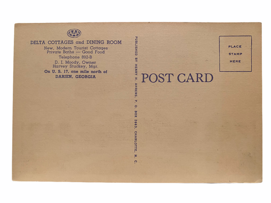 Delta Cottages U.S. 17 Darien Georgia, Unused Linen Postcard Circa 1930-1944